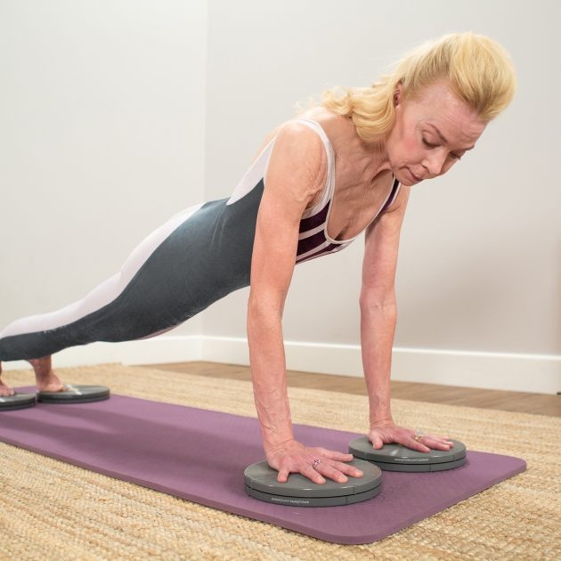 Precision Rotator Discs are used on the floor and on Pilates equipment such as the Reformer and Trapeze Table (Cadillac). No-resistance rotator discs have long been used to challenge stability and encourage rotational movements in the limbs or torso. Adding resistance enhances the challenge and helps strengthen rotational patterns, joint stability, balance and range of motion.